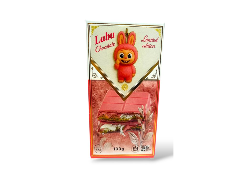 Cokoláda Angel Hair - Anjelské vlasy, z malinovej bielej čokolády s cukrovou vatou a s 20% pistáciovo-kadayfovou náplňou