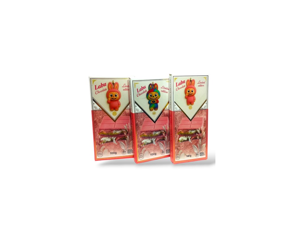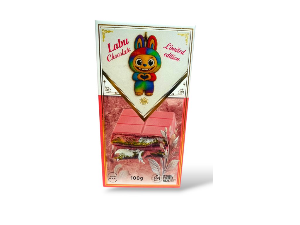 Čokoláda Angel Hair - Anjelské vlasy, z malinovej bielej čokolády s cukrovou vatou a s 20% pistáciovo-kadayfovou náplňou