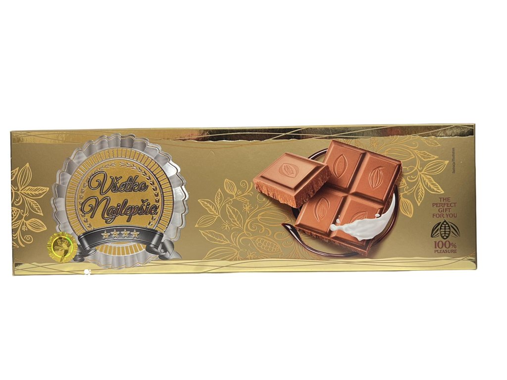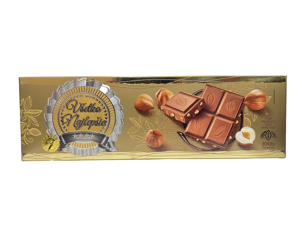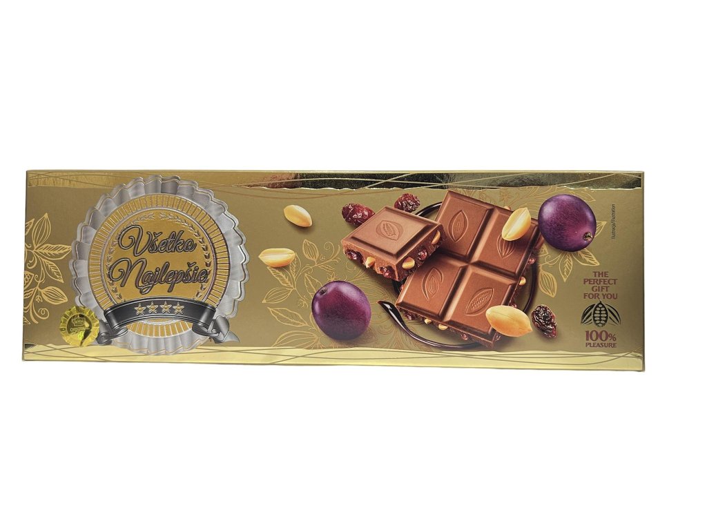 Príchute: mliečna, mliečna s hrozienkami a arašidmi, mliečna oriešková, horká s višňou a brusnicami