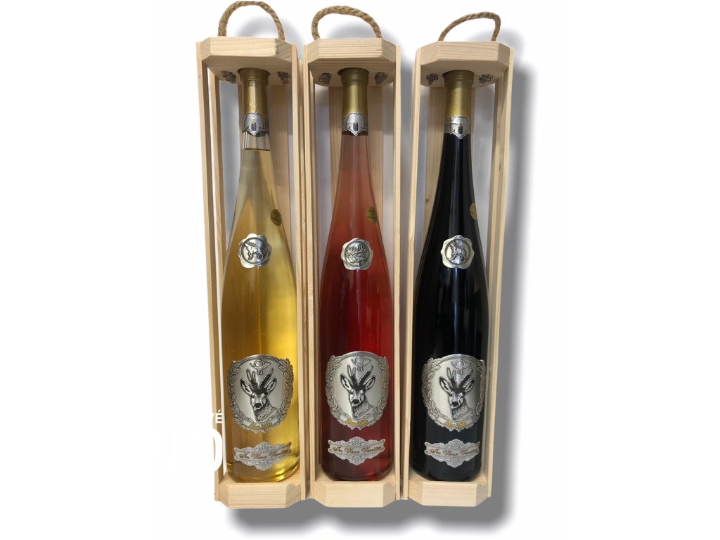 Darčekové víno rýnska fľaša 1,5 l pre poľovníkov - srnec, v drevenom balení